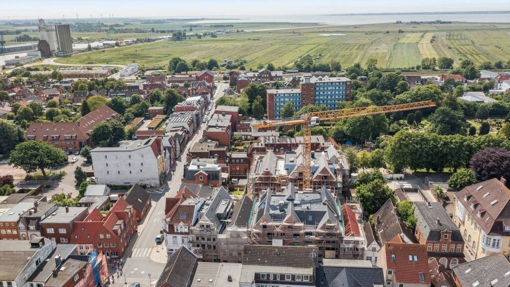 NeustadtQuartier Husum - ein Neubauprojekt in bester Innenstadtlage, das eine Lücke zwischen den Straßenzügen Neustadt und Nordbahnhofstraße schließt. Die Architektur ist geprägt von zwei giebelständigen Gebäuden, die sich stilgerecht in die vorhandene und überwiegend denkmalgeschützte Bebauung einfügen.