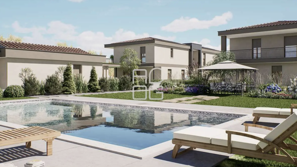 In der Ortschaft Lazise, in einer sehr ruhigen Gegend und in unmittelbarer Nähe zu den Dienstleistungen, bieten wir einen neuen Immobilienkomplex zum Verkauf an, der aus acht Wohnungen und einer einzigen Villa besteht, komplett mit überdachten Parkplätzen sowie einem gemeinsamen Schwimmbad mit einem großen Solariumbereich. Hier bieten wir eine Einheit im Erdgeschoss an, die aus einem hellen Wohnbereich, einem Doppelschlafzimmer, einem Badezimmer und einem Einzelschlafzimmer sowie einem großen privaten Garten von ca. 120 m² besteht. Ein praktischer Keller und ein Carport runden das Objekt ab. Das Projekt wurde bis ins kleinste Detail ausgearbeitet und verfügt über eine hervorragende Ausstattung. Jede Einheit wird mit einer Klimaanlage, einer Fußbodenheizung, einer kontrollierten mechanischen Belüftung und einer Photovoltaikanlage ausgestattet, um hohe Energieeinsparungen zu gewährleisten. Für weitere Informationen und Besichtigungen vor Ort stehen wir Ihnen gerne zur Verfügung.