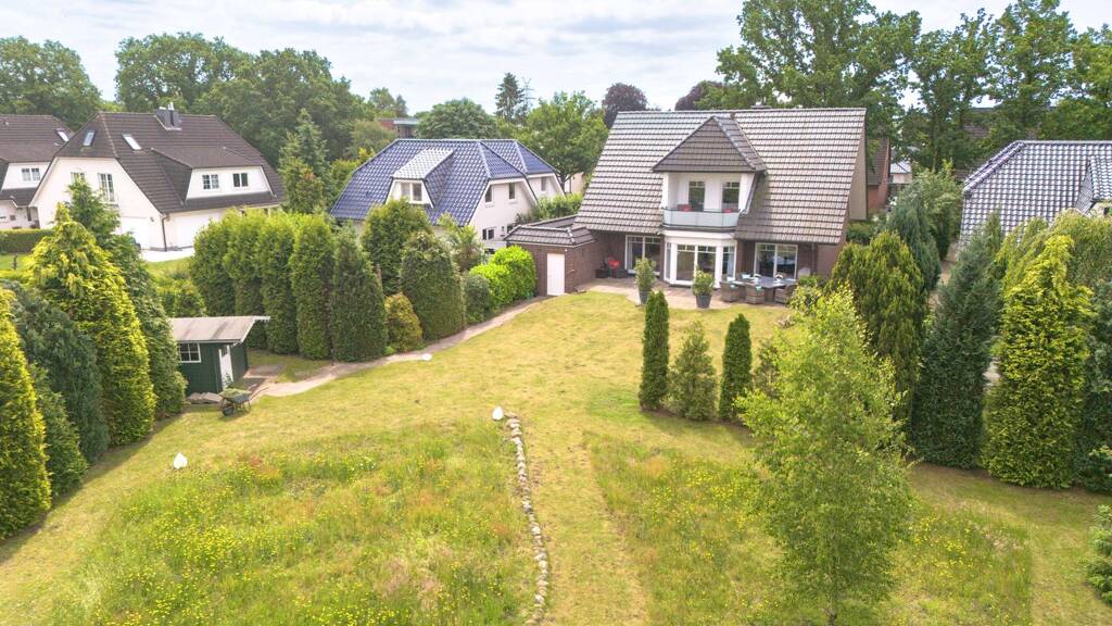 Dieses im Jahr 1999 individuell geplante und in Holzständerwerk- bauweise erstellte Einfamilienhaus mit Vollkeller, bietet viel Komfort und Raum für die ganze Familie. Es präsentiert sich von der Auffahrt bis zum Dachgeschoss als ideal geplantes Haus für Menschen, die es gerne hell und freundlich und etwas großzügiger mögen. Eine moderne, zeitgemäße Ausstattung ist hier selbstverständlich. Der Grundriss im Erdgeschoss ist offen gestaltet, die Deckenhöhe beläuft sich auf ca. 2,70 Meter. Von der Diele fällt der Blick in den ca. 45 m² großen Wohnbereich mit anschließender Terrasse, die sich über drei Flügeltüren erreichen lässt. Großzügige Fensterflächen spenden hier reichlich Licht und bringen die Räumlichkeiten gut zur Geltung. Die ca. 14 m² große, voll ausgestattete Wohnküche mit weißen Fronten schließt sich nahtlos dem Wohnbereich an und bietet Zugang auf die Terrasse. Sollte eine geschlossene Küche oder ein zweites Zimmer gewünscht werden, so ist dies mit einfachen Maßnahmen herstellbar. Ein Gästeduschbad und ein Vorratsraum vervollständigen diese Ebene. Das Obergeschoss mit weiteren drei Zimmern erreicht man über eine weiß lackierte Massivholztreppe. Zwei der Zimmer bieten einen Zugang zur Loggia. Das sehr schön ausgestattete Vollbad, welches über ein gut durchdachtes Raumkonzept verfügt, beschließt diese Ebene. Der über dieser Etage befindliche Spitzboden bietet weitere Staufläche und eine Ausbaumöglichkeit. Er verfügt bereits über zwei Heizungsanschlüsse. Weitere Highlights die wir Ihnen nicht vorenthalten möchten sind zwei PKW-Außenstellplätze, eine ca. 26 m² große Garage, ein traumhafter Garten und eine verkehrs-beruhigte Lage in einer Anliegerstraße. Im Frühjahr 2022 wurde eine neue Heizung eingebaut, die sich per App regulieren lässt. Über ein Smart Home System werden die Rollläden und die Außenbeleuchtung gesteuert. Ein freier Kaminzug kann für die Leitungsführung einer Solar-/Photovoltaikanlage genutzt werden.