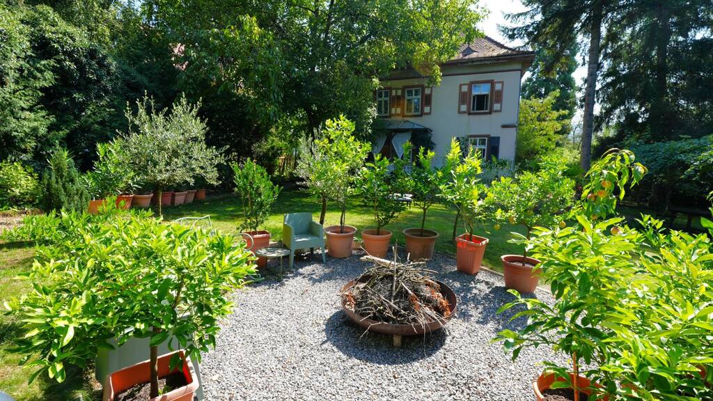 Der grosszügige Garten ist eine wahre Oase der Ruhe. Alte Bäume spenden Schatten, während die liebevoll gestaltete Gartenbereiche zum Entspannen einladen. Ob auf der sonnigen Terrasse, im Grünen unter den Bäumen oder inmitten der mediterranen Pflanzen. Hier geniessen Sie Erholung in privater, geschützter Atmosphäre.