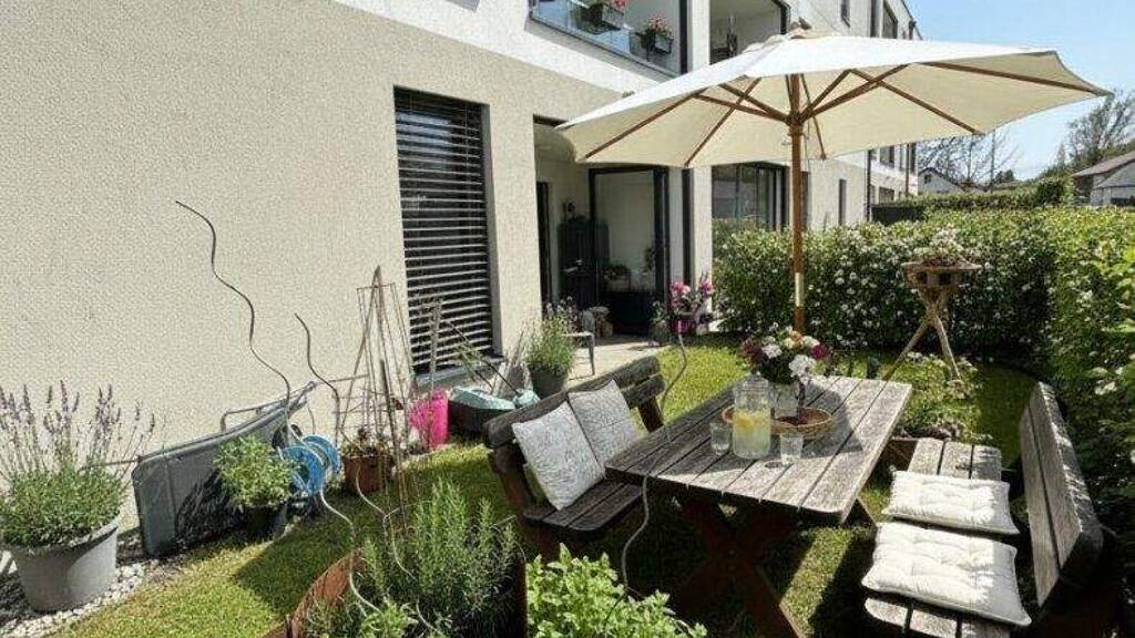Diese moderne Garten-Eigentumswohnung im Erdgeschoss liegt in einer hochwertigen Wohnanlage in ruhiger Grünlage von Schlatt.