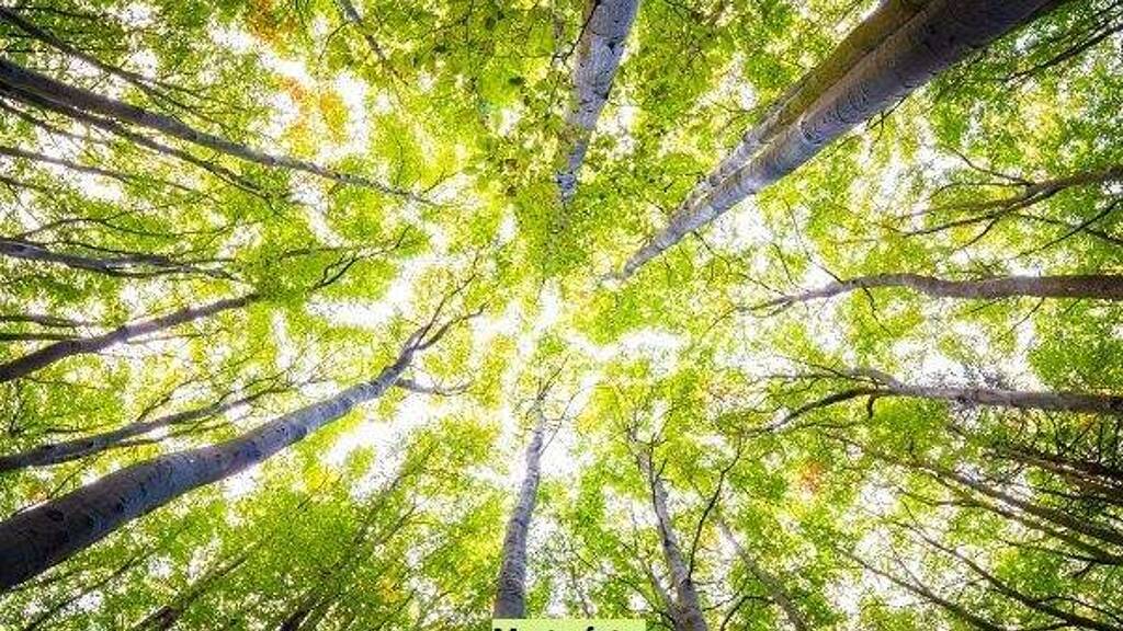 Ein Waldgebiet, das aus einer Mischung von Kiefern, Fichten und Laubbäumen besteht
