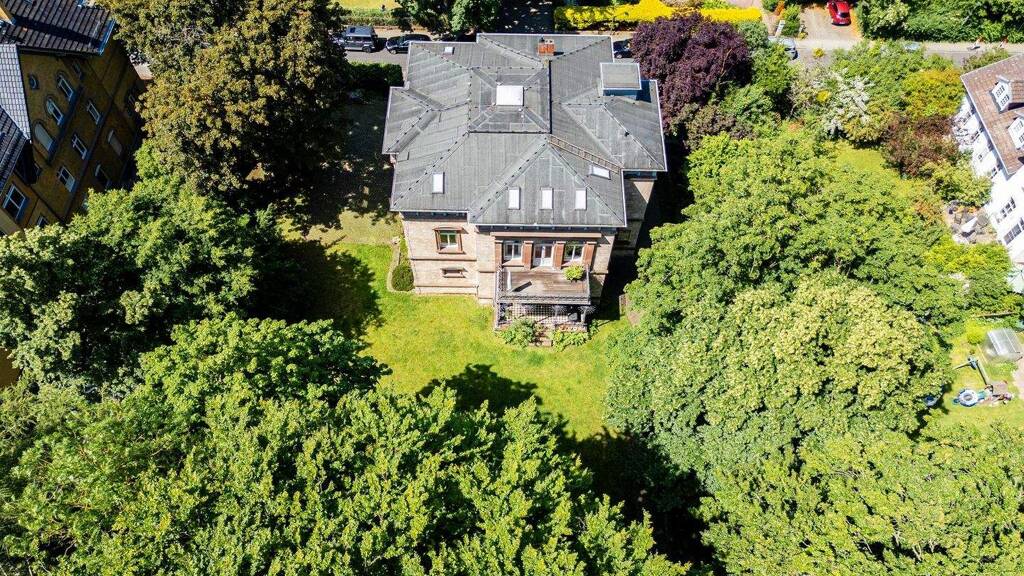 Die denkmalgeschützte Villa wurde 1885 im Stil der Neorenaissance erbaut und seit 2005 als Büro- und Wohnhaus genutzt. Das ca. 3.075 m² große Grundstück ist parkähnlich angelegt, eingewachsen und hat beeindruckenden alten Baumbestand. Auf 3 Etagen stehen ca. 555 m² Wohn- und Büronutzfläche zur Verfügung. Im Keller von ca. 190 m² Nutzfläche gibt es Räume zum Abstellen, zwei Archive, Waschküche, Sanitärräume mit getrennten Damen- und Herren WCs sowie die Haustechnik. Das Objekt wurde 2006 umfassend saniert und modernisiert, es erfolgten Rückbauten, um den ursprünglichen Zustand wiederherzustellen. Ein Fahrstuhl wurde eingebaut. Die Mischung aus Altem und Neuem ist perfekt umgesetzt. Die Geschosse sind sowohl über das repräsentative Treppenhaus als auch mit dem Fahrstuhl verbunden. Das Erdgeschoss und das Dachgeschoss werden als Bürofläche genutzt. Im Obergeschoss liegt eine weitläufige Wohnetage mit Balkon und Blick in den Garten.