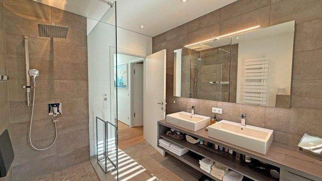 Die ca. 93 m² große Wohnung überzeugt durch eine durchdachte Raumaufteilung, lichtdurchflutete Bereiche sowie eine hochwertige Ausstattung bis ins Detail. Herzstück ist der großzügige Wohn- und Essbereich mit stilvoller Designerküche, ausgestattet mit erstklassigen Miele-Geräten und Bora-Dunstabzug. Von hier aus gelangen Sie direkt auf die rund 29 m² große Terrasse ein perfekter Ort zum Entspannen, ausgestattet mit Markise und Heizstrahler, sodass Sie die Freiluftsaison nahezu ganzjährig genießen können.