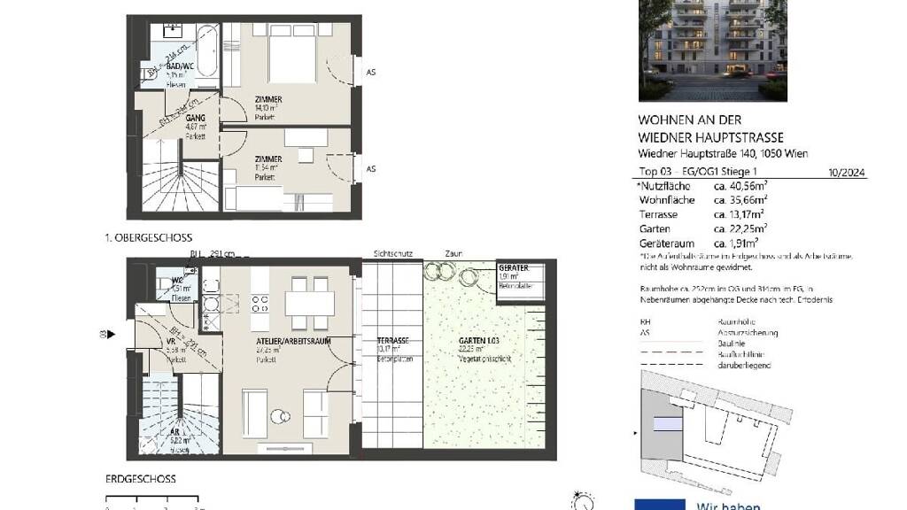Stichworte Anzahl Terrassen: 1, Balkon-Terrassen-Fläche: 13,17 m², Gartenfläche: 22,25 m², Wohnungsnr.: 1.03