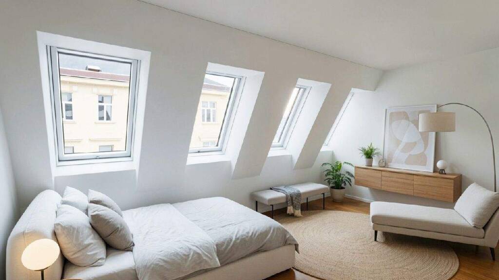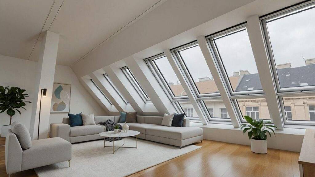 Im neu ausgebauten Dachgeschoss befinden sich insgesamt 6 exklusive Wohnungen, davon 3 stilvolle Maisonettwohnungen. Besonders hervorzuheben ist die Top 23, die mit einer großzügigen Dachterrasse und einem atemberaubenden 360-Grad-Blick über Wien beeindruckt ein einzigartiges Wohngefühl hoch über den Dächern der Stadt.