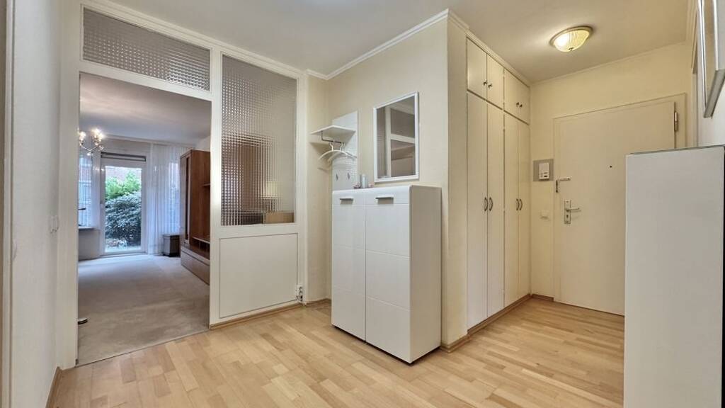 Die Wohnung verfügt über eine gut geschnittene Wohnfläche von ca. 56 m² und überzeugt durch ein funktionales Raumkonzept, das alle Bereiche optimal nutzt. Beim Betreten der Wohnung empfängt Sie ein Eingangsbereich, der ausreichend Platz für eine Garderobe bietet. Ein praktischer Einbauschrank sorgt hier zusätzlich für Stauraum und Ordnung. Von der Diele aus sind alle Räume bequem erreichbar.