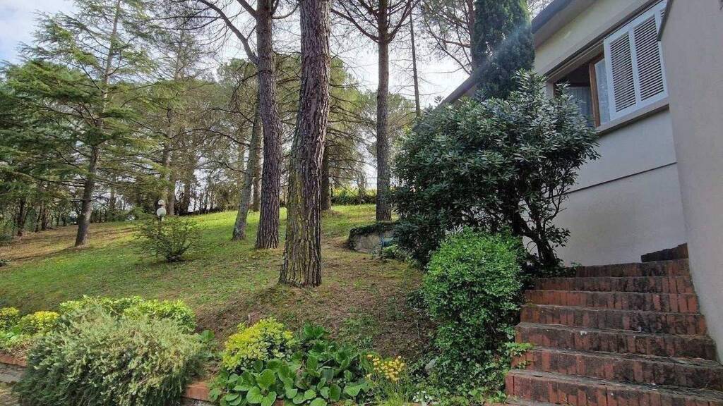 Das Haus bietet mit seinen großzügigen Fenstern sehr viel Licht und es ist von Terrassen und einem schönen Park umgeben. Die hohen Pinien, die mediterranen Pflanzen und der Ausblick auf das Dorf mit seiner Burg, besonders schön zum Sonnenuntergang, dürften für Jedermann äußerst faszinierend sein. Jeder Raum ist ganz individuell designed und mit viel Liebe zum Detail gestaltet, sorgsam hergestellte Möbel sind fein untereinander abgestimmt, ja sogar jede Tür ist besonders gestaltet.