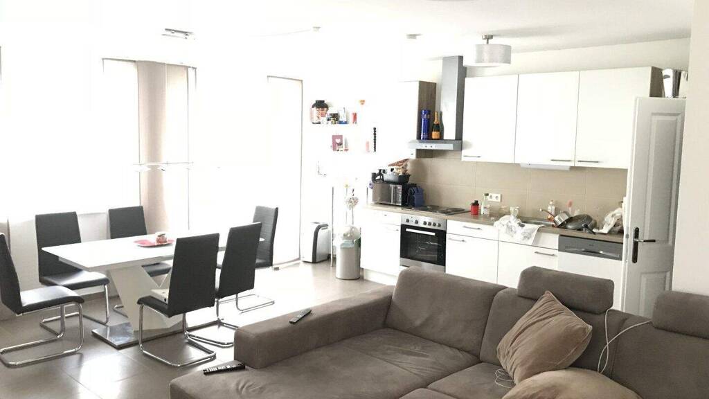 Bereits beim Betreten der Wohnung empfängt Sie ein einladender Vorraum, der einen ersten Eindruck von der großzügigen Gestaltung vermittelt. Von hier aus sind sowohl die separate Gästetoilette als auch der zentrale Wohnbereich bequem erreichbar. Die helle und großzügige Wohnküche bildet das Herzstück der Wohnung: Große Fensterflächen sorgen für eine lichtdurchflutete, freundliche Atmosphäre und bieten ausreichend Platz für einen gemütlichen Essbereich. Der direkt angeschlossene Balkon lädt zum Entspannen im Freien ein und erweitert den Wohnraum ideal. Ein praktischer Abstellraum innerhalb der Wohnküche bietet zusätzlichen Stauraum für Vorräte und Küchenutensilien.
