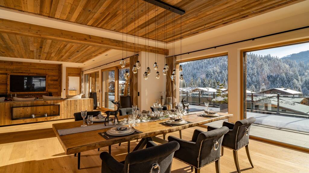 Diese Luxusimmobilie befindet sich in den malerischen Kitzbüheler Alpen, eingebettet am Fuße des majestätischen Wilden Kaisers. Sie genießt eine erhöhte Hanglage, die einen unvergleichlichen Blick über die Nachbarschaft auf den Hartkaiser sowie auf das bezaubernde Dorf mit seiner historischen Kirche ermöglicht. Dieser Blick ist einzigartig unverbaubar und bietet eine atemberaubende Kulisse zu jeder Jahreszeit. Diese exklusive Luxusimmobilie wurde mit der Vision eines harmonischen Familienlebens konzipiert. Sie bietet nicht nur ein luxuriöses Zuhause, sondern auch eine intelligente Aufteilung in drei separate Wohnungen, die perfekt auf die Bedürfnisse verschiedener Generationen innerhalb Ihrer Familie zugeschnitten sind. Die großzügige Penthousewohnung, gelegen im obersten Stockwerk, bietet den Eltern einen stilvollen und komfortablen Rückzugsort. Mit drei Schlafzimmern, darunter ein beeindruckendes Master-Schlafzimmer mit eigenem Bad und Schrankraum, sowie einem Büro mit Panoramablick, werden die Eltern hier ein Höchstmaß an Privatsphäre und Luxus genießen. Die beiden Wohnungen in der mittleren Etage sind perfekt ausgestattet, um Luxus und Komfort für Familienmitglieder oder Gäste zu bieten. Jede dieser Wohnungen verfügt über eine Altholzküche mit einer geräumigen Speisekammer, die das Kochen zu einem Vergnügen macht und ausreichend Stauraum bietet.