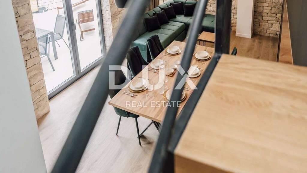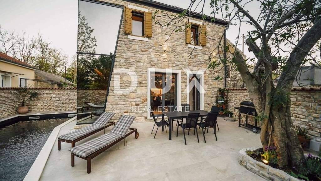 ZADAR, PRIVLAKA Luxuriöse Steinvilla mit beheiztem Pool Schöne Steinvilla zum Verkauf in Privlaka in der Nähe von Zadar. Diese Antiquität wurde im Jahr 2022 gemäß dem Denkmalschutzplan komplett umgebaut, so dass im Außen- und Innenbereich der Villa rustikaler Stein vorherrscht. Die Villa wurde auf einem Grundstück mit einer Gesamtfläche von 158 m2 erbaut und verfügt über 100 m2 Wohnfläche. Im Erdgeschoss gibt es ein geräumiges Wohnzimmer, eine moderne Küche und ein Esszimmer sowie ein Badezimmer. Das Erdgeschoss verfügt über eine Fußbodenheizung. Im ersten Stock der Villa befinden sich zwei klimatisierte Schlafzimmer und ein Badezimmer. Im komplett umzäunten Garten der Villa gibt es einen großen beheizten Swimmingpool, einen Grill und einen privaten Parkplatz. Die Villa mit bereits gut etabliertem Tourismusbetrieb liegt 850 m vom Meer und wunderschönen Stränden mit der kristallklaren Adria entfernt. Privlaka ist ein kleiner malerischer Ort an der Adriaküste, der durch seine friedliche Atmosphäre und wunderschöne Strände begeistert. Privlaka liegt nur 16 km vom Stadtzentrum von Zadar entfernt und liegt auch in der Nähe verschiedener Einrichtungen wie Nationalparks und Naturparks. In der Nähe liegt auch die Königsstadt Nin, die für die längsten Sandstrände Kroatiens und ihr reiches kulturelles und historisches Erbe bekannt ist. Der nächste Flughafen liegt 27 km von Privlaka entfernt und die Autobahn ist nur 28 km entfernt. Sehr geehrte Kunden, die Agenturprovision wird gemäß den Allgemeinen Geschäftsbedingungen www.dux-nekretnine.hr/opci-uvjeti-poslovanja berechnet