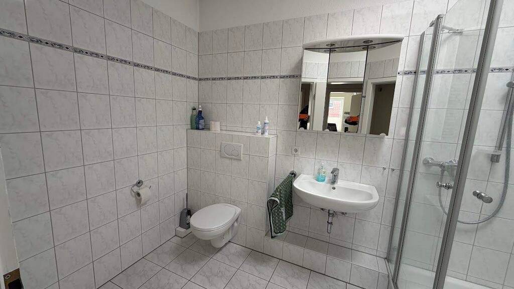 Sie umfasst vier hell gestaltete Büros, eine voll ausgestattete Küche sowie zwei Dielenbereiche. Ein besonderes Highlight ist der Backoffice-Bereich mit einem praktischen Patch-Schrank, der für eine durchgehende Netzwerkinfrastruktur sorgt. Die Fläche ist komplett vernetzt und ideal für moderne Arbeitsstrukturen.