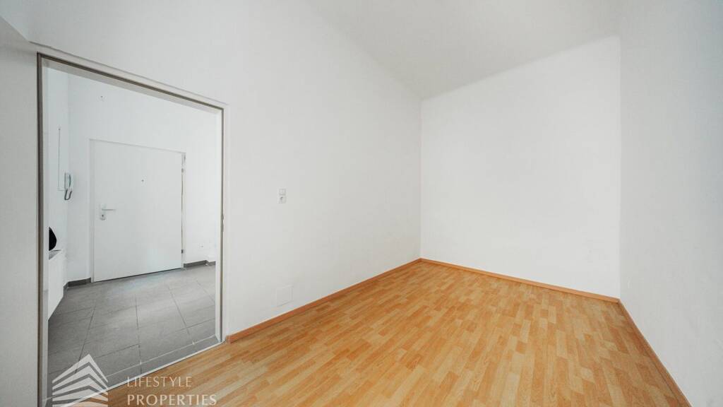 Sie betreten die Wohnung und befinden sich im Vorraum, gerade durch gelangen Sie in das erste Schlafzimmer, vom Eingang links gelangen Sie in das zweite Schlafzimmer, rechts befindet sich der Wohnraum mit angrenzender Küche. Im Vorraum befinden sich außerdem noch das Badezimmer welches mit einer Dusche, einem Handwaschbecken und einem Waschmaschinenanschluss ausgestattet ist und ein separates WC.
