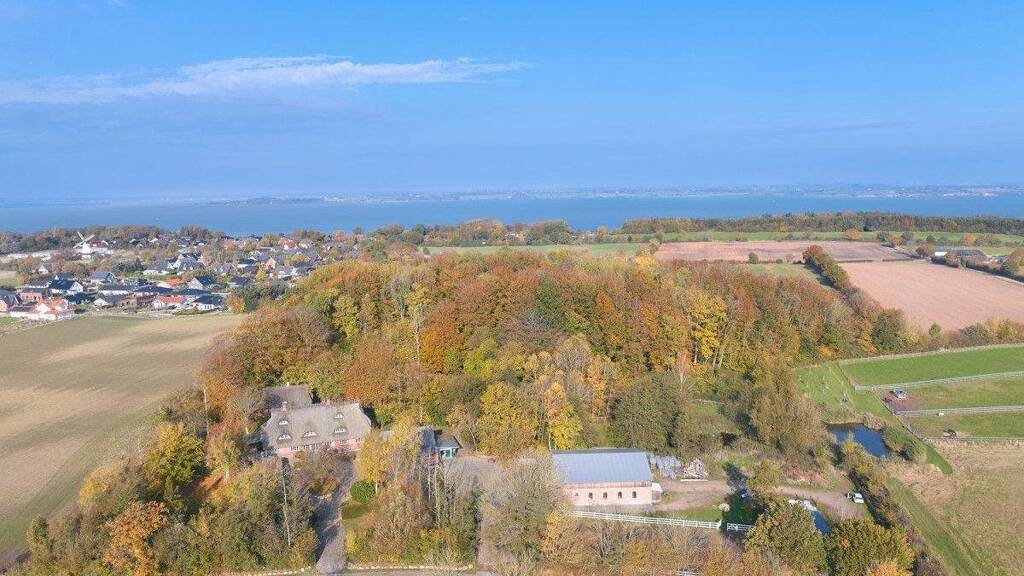 Bei diesem exklusiven Angebot handelt es sich um ein großzügiges Anwesen in wassernaher Alleinlage an der Flensburger Förde. Auf ca. 6,8 ha werden Ihnen hier auf einem einzigartigen Grundstück Reitplätze, landwirtschaftliche Flächen und ein traumhafter Laubwald sowie mehrere Teiche geboten. Neben dem vollständig sanierten Haupthaus von 1786 befinden sich auf dem Grundstück außerdem ein zweites, kleineres Reetdachhaus sowie eine massiv errichtete, landwirtschaftliche Halle und weitere Nebengebäude, z. B. ein Pferdestall und eine Hobbywerkstatt.
