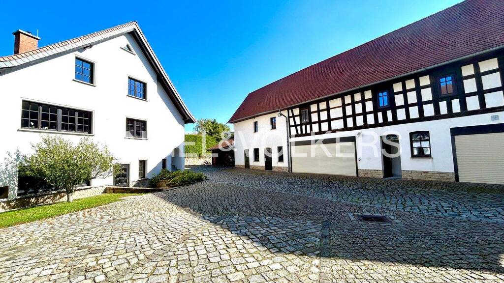 Dieser stilvolle Dreiseitenhof befindet sich in Rehmsdorf, einem ruhigen und traditionsreichen Ortsteil der Stadt Zeitz im Burgenlandkreis, Sachsen-Anhalt. Die Lage verbindet ländliche Idylle mit einer hervorragenden Erreichbarkeit wichtiger Städte und Infrastrukturen. Die nächstgelegene Stadt Zeitz (ca. 6 km) bietet vielfältige Einkaufsmöglichkeiten, Schulen, Kindergärten, Ärzten sowie kulturellen Einrichtungen. Darüber hinaus ist die Stadt für ihr historisches Schloss Moritzburg und die weitläufigen Parkanlagen bekannt.Die Großstadt Gera ist in nur rund 20 Fahrminuten erreichbar und eröffnet weitere Angebote im Bereich Wirtschaft, Kultur und Bildung. Leipzig - als pulsierende Metropole und einer der dynamischsten Wirtschaftsstandorte Deutschlands - liegt etwa 45 Minuten entfernt und ist durch die Nähe zur A9 und A38 optimal angebunden. Auch die Städte Weißenfels, Naumburg und Altenburg sind in kurzer Zeit erreichbar und erweitern die Auswahl an Freizeit-, Arbeits- und Einkaufsmöglichkeiten. Die ländliche Umgebung rund um Rehmsdorf ist geprägt von Feldern, Wäldern und kleinen Ortschaften, die einen hohen Erholungswert bieten. Gleichzeitig profitieren Bewohner und Besucher von der zentralen Lage im Dreiländereck Sachsen-Anhalt, Sachsen und Thüringen. Damit eignet sich der Standort sowohl für Menschen, die das ruhige Landleben mit Naturverbundenheit schätzen, als auch für Gewerbetreibende, die von der Nähe zu wirtschaftlich starken Städten und einer guten Infrastruktur profitieren möchten.