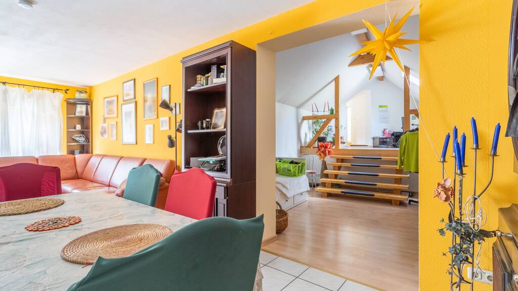 Das Haus A wurde im Jahr 1993 auf der ursprünglichen Gewerbeimmobilie aufgestockt und um 3 Zimmer und 1 Tageslichtbad erweitert. Im Untergeschoss befinden sich 4 Räume, die sich hervorragend als Lager oder Büro nutzen lassen. Ein Gäste-WC und der Heizraum runden diese Etage ab. Abgetrennt zu diesem Teil über einen separaten Eingang erreichen Sie das Obergeschoss. Hier empfängt Sie der einladende Wohn-/Essbereich, die Küche und das innenliegende Bad mit Dusche. Über die Treppe gelangen Sie zu den beiden Schlafräumen und das zweite Tageslichtbadezimmer.