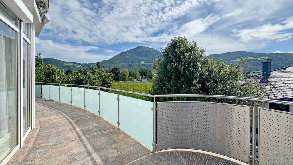 Von der südseitig ausgerichteten, ca. 23 m² großen Terrasse genießt man einen wunderbaren Ausblick ins Grüne und auf die umliegenden Berge. Durch das großzügige Ausmaß bietet sie diverse Gestaltungsmöglichkeiten.