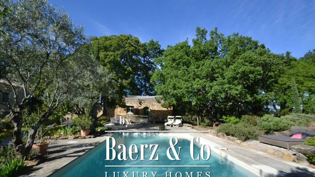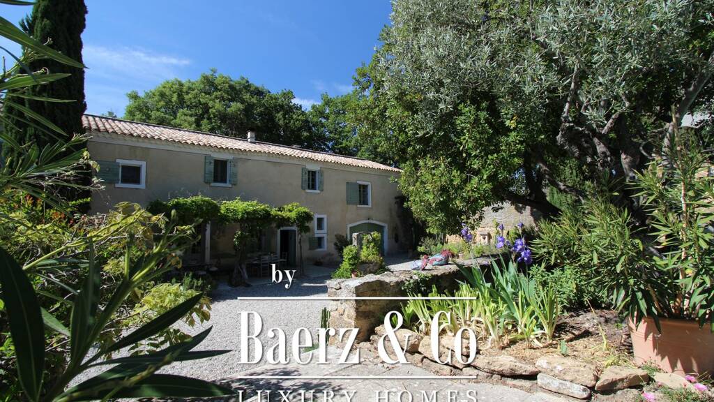 in a peaceful environment, the whole of 2.4 hectares is embellished with a swimming pool and a magnificent park made up of local species with stone walls and roman remains overlooking mont ventoux. the rest of the land is made up of olive trees and orchards.