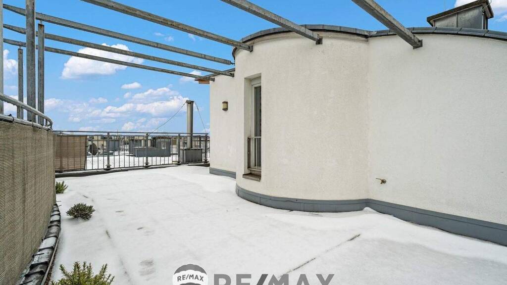 For sale is this spacious two-level maisonette apartment in a highly sought-after location on Wagramer Straße, close to Donau Zentrum and U1 underground line. The apartment impresses with its well-designed layout, ceiling height of approx. 2.5 m with no sloping ceilings, and two exceptionally large terraces.