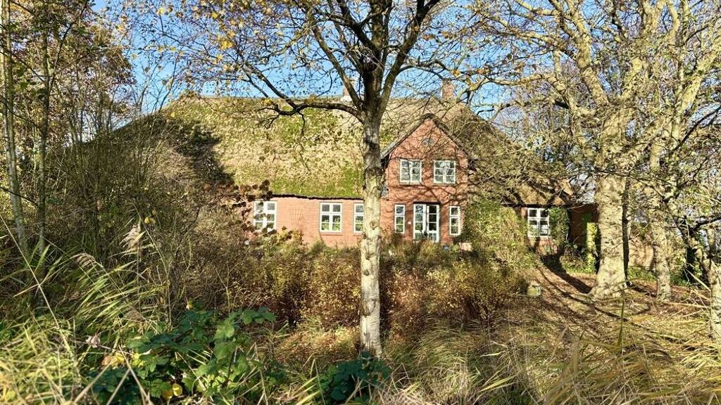 Das historische Reetlandhaus steht nicht unter Denkmalschutz. Imposant liegt es auf einer hohen, von Menschenhand vor hunderten von Jahren aufgetragenen Warft. Einst verwaltete ein Lehnsmann hier die Geschicke.