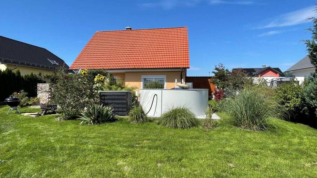 Der Außenbereich ist ein echtes Highlight: Auf dem 742 m² großen, gepflegten Grundstück lädt ein wunderschöner Garten mit Terrasse und Pool zum Entspannen und Genießen ein. Eine Garage und ein Carport bieten zusätzliche Stell- und Lagerfläche.