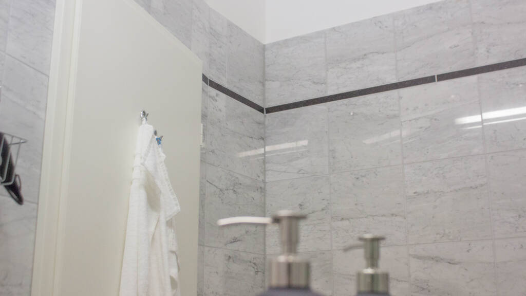 Darüber hinaus verfügt die Wohnung über einen Esstisch mit 4 Stühlen, eine voll ausgestattete Küche mit 2 Hochstühlen und Tisch, einem Marmorbad mit Regendusche, Föhn und Handtüchern sowie einer Garderobe mit Schuhablage.