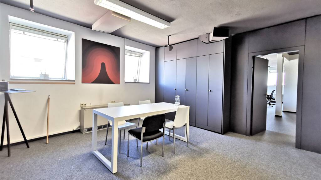 Die Büroräume im vorderen Bereich überzeugen mit einem guten Ausbaustandard, ausgestattet mit Teppichboden und weißen Wänden. Im hinteren Teil der Fläche ist je nach Bedarf an Mietfläche bzw. Raumgröße eine kleine Oberflächensanierung erforderlich, um die Räumlichkeiten für die Büronutzung vorzubereiten. Bisher wurde dieser Bereich als Lager und Archiv genutzt.