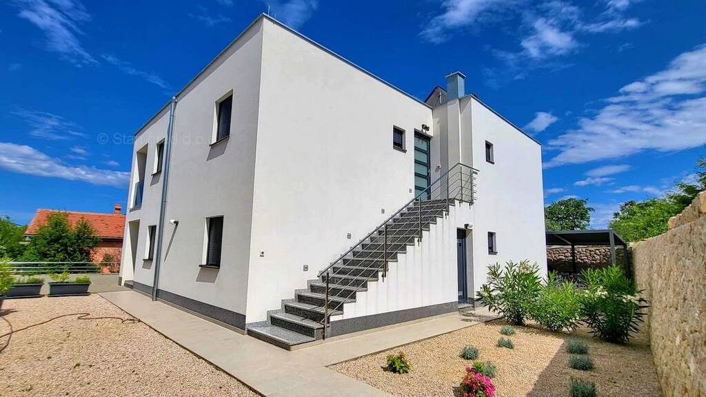 Die Stan Grad Immobilien-Agentur im Kvarner-Gebiet auf der Insel Krk bietet ein außergewöhnliches mediterranes Stadthaus zum Verkauf, das nach einem modernen Design gebaut wurde, in einer entwickelten und attraktiven nordadriatischen Region. Dieses günstige Haus befindet sich in der Nähe des bekannten Ortes Malinska, an einer grünen Lage, fernab vom Stadtlärm.