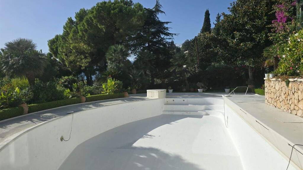 Im 1. und 2. Stock befindet sich das Haupthaus, das aus einem geräumigen Wohnzimmer-Küche, einem Badezimmer und großen Terrassen mit ungehindertem Meerblick, dem üppigen Garten, dem großen Schwimmbad sowie dem Basketball- und Tennisplatz besteht.