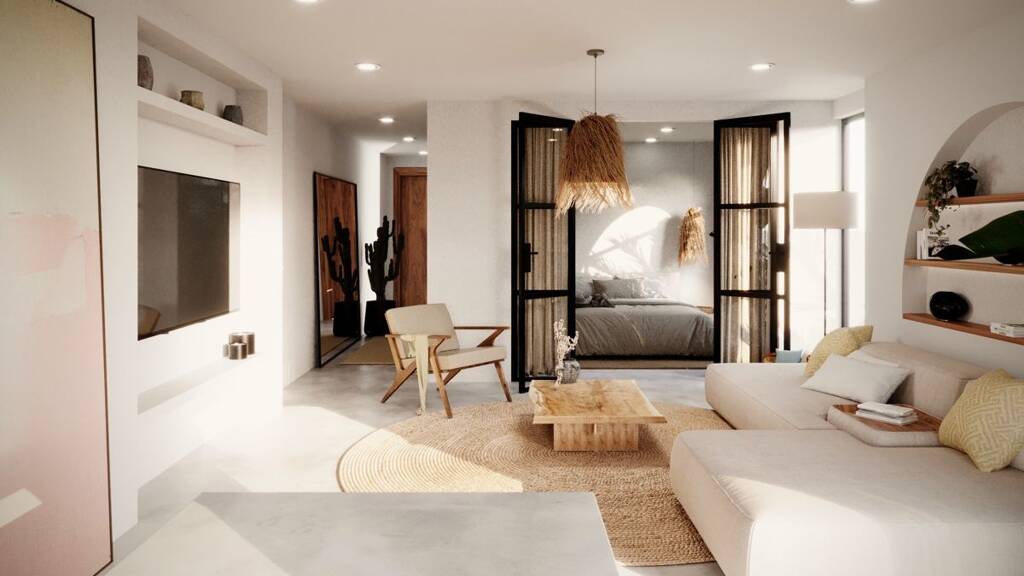- Hochwertige Neubauwohnung in Seget Vranjica - Die Wohnfläche beläuft sich auf ca. 63 m² und verteilt sich auf zwei Zimmer - Lichtdurchflutetes Wohnambiente durch großzügige Fensterelemente - Heller Wohn- und Essbereich mit offener Küche - Loftcharakter durch das direkt an das Wohnzimmer angebundene Schlafzimmer - Hochwertiges Badezimmer mit ebenerdiger Dusche - Großzügige Loggia bietet auf ca. 20 m² Ruhe und Entspannung - Fantastische Dachterrasse mit Swimmingpool - Kombination aus sorgfältig ausgewählten Pflanzen wie Zypressen, Kakteen, Lavendel & Bougainvillea - Idyllische Lage in unmittelbare Nähe zum Meer - Zusätzlicher Tiefgaragenstellplatz für 20.000 € separat erwerbbar - Das Objekt verfügt über eine Gemeinschaftswaschküche