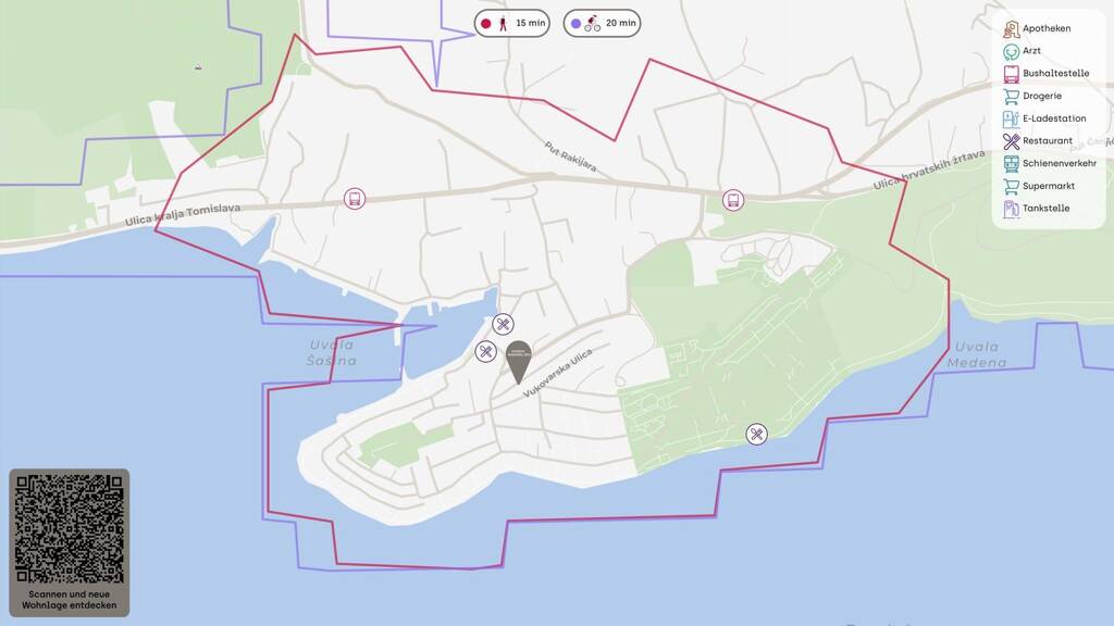 Der nächstgelegene Flughafen, Split, befindet sich nur 12 Kilometer entfernt, was einer Fahrtzeit von etwa 14 Minuten entspricht. Dank seiner günstigen Lage und der idyllischen Umgebung ist Seget Vranjica ein idealer Ausgangspunkt, um die Schönheiten Dalmatiens zu erkunden. Ob Sie die alten Gassen von Trogir, die lebhafte Atmosphäre von Split oder die traumhaften Strände der Adriaküste erleben möchten, dieses charmante Dorf bietet all das in unmittelbarer Nähe