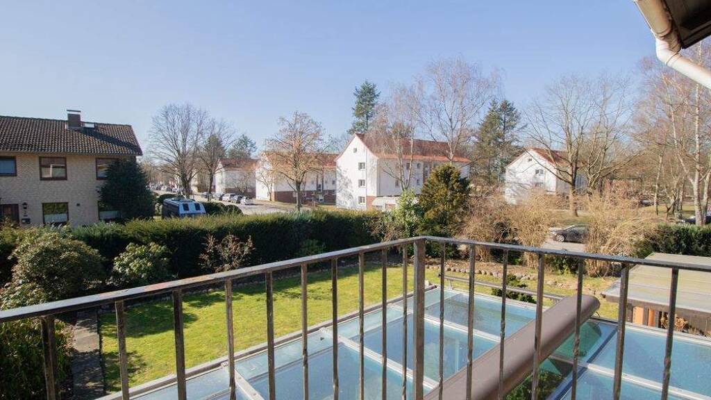 Das Obergeschoss ist als Vollgeschoss ohne Dachschrägen ausgeführt und bietet dadurch eine besonders gute Nutzbarkeit der Räume. Hier stehen Ihnen zwei Schlafzimmer sowie ein weiteres Zimmer, das sich ideal als Büro oder Gästezimmer eignet, zur Verfügung. Eines der Schlafzimmer verfügt über einen direkten Zugang zum Balkon mit schönem Blick in den großzügigen Garten. Das Tageslichtbad ist mit einer Dusche ausgestattet und wurde im Jahr 2010 modernisiert. Teilweise ist das Obergeschoss mit Parkettboden versehen, was für eine angenehme Wohnatmosphäre sorgt.