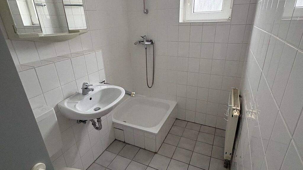 Das Badezimmer ist mit einem Fenster ausgestattet und verfügt über eine Dusche. Dadurch ist eine natürliche Belüftung sowie ausreichend Tageslicht gewährleistet.