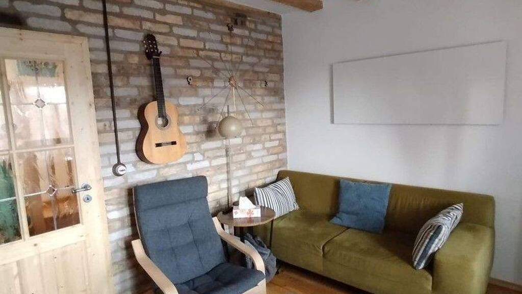Das Wohnzimmer bietet ein Kaminofen, der zum gemütlichen Verweilen vor dem Feuer einlädt.