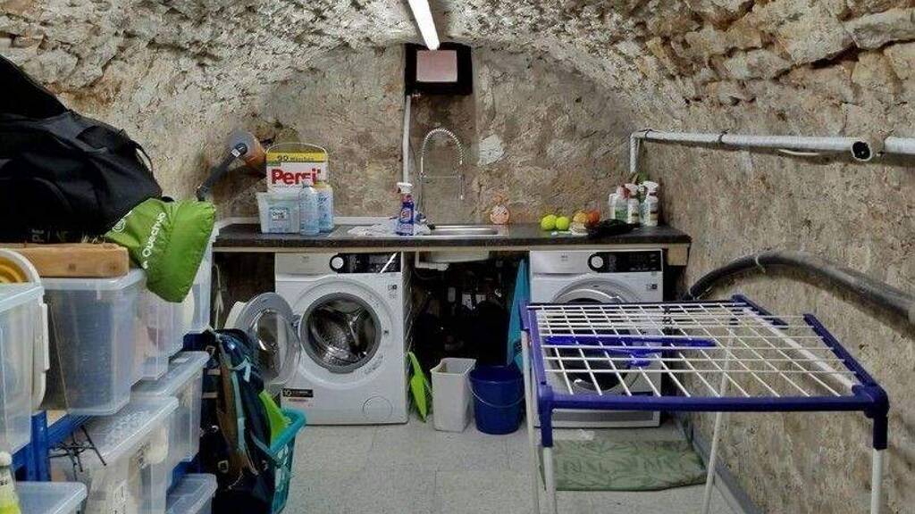 Im Gewölbekeller befinden sich die Hausanschlüsse sowie die Wärmepumpe mit Wasserspeicher für das Warmwasser.