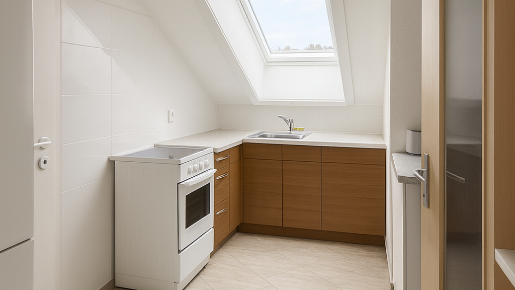 Das Tageslichtbad ist mit einer Badewanne ausgestattet und bietet einen angenehmen Komfort. Die vorhandene Einbauküche ist im Kaufpreis enthalten und rundet das Wohnangebot praktisch ab.