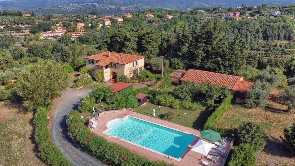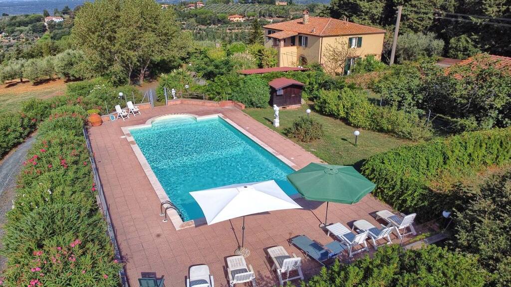 Das alte toskanische Bauernhaus befindet sich in Panoramalage am Ende eines ruhigen Feldweges und ist auf zwei Ebenen aufgeteilt. Im Erdgeschoss befindet sich eine renovierte Einzimmerwohnung, ideal für Gäste oder zur sofortigen Nutzung, sowie eine komplette Wohnung mit Küche, zwei Schlafzimmern und Bad, ein alter Ofen und ein großer Abstellraum. Im ersten Stock : Ein großes Wohnzimmer mit Küchenzeile, vier Schlafzimmer, ein Badezimmer und eine wunderbare Loggia mit einem atemberaubenden Meerblick. Auf dem privaten Hof befindet sich ein großes landwirtschaftliches Nebengebäude, das derzeit in Lagerräume unterteilt ist, aber in eine Wohnung umgewandelt werden kann: ideal für die Erweiterung des Wohnraums oder die Schaffung einer Touristenunterkunft.