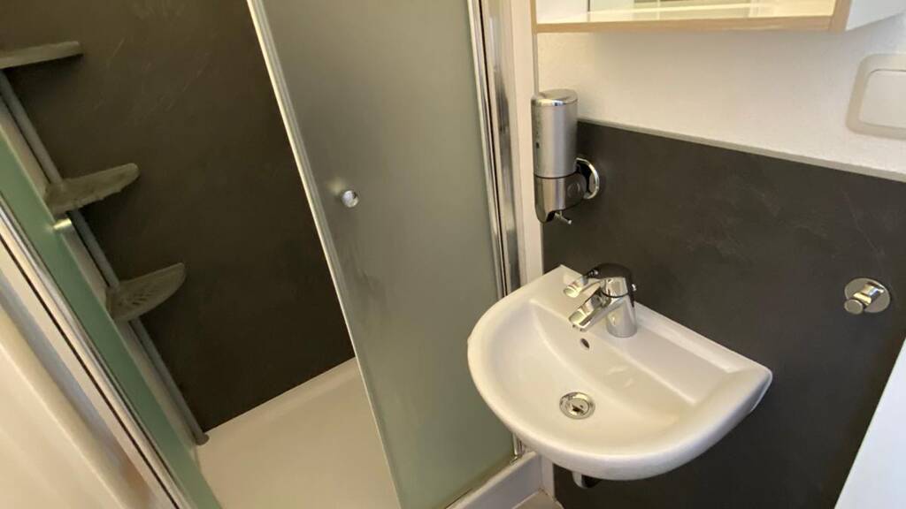 Die Gemeinschaftsküche und separate Damen- und Herrntoilette wird noch von einem weiteren Person genutzt.