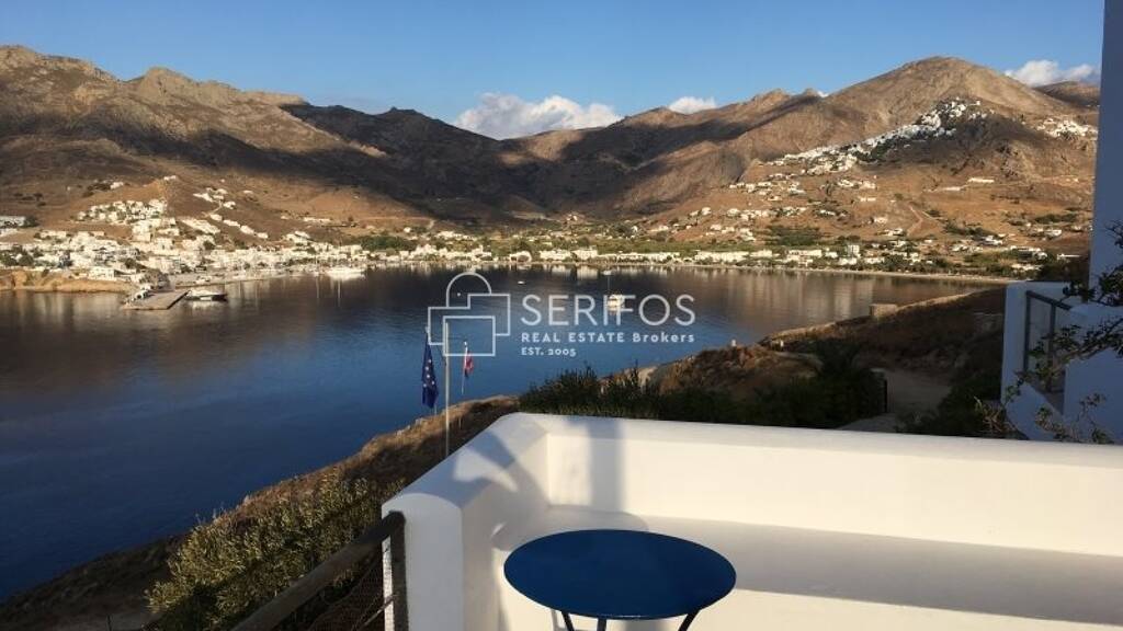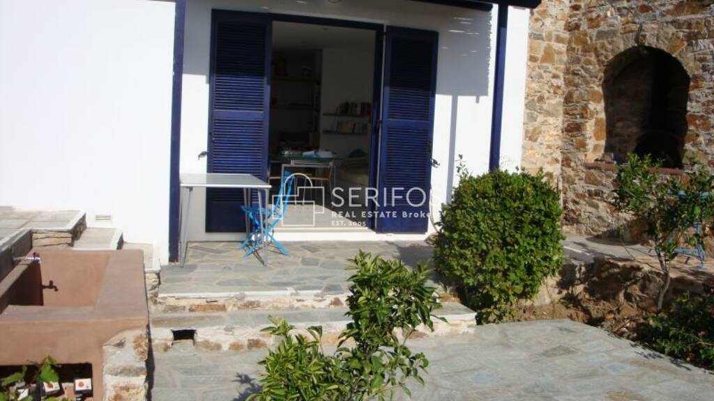 Sierifos/Tsilipaki Auf einer Felsnadel erbaut, die über dem Bucht von Serifos thront, bietet diese 120 m² große Stein- und Weißvilla eine atemberaubende Panoramablicke. Die geräumige Terrasse blickt auf der einen Seite auf den Hafen, auf der Südseite auf Milos und das offene Meer, während sie östlich die Insel Siros (Si?fno) erblickt. Mit zwei Schlafzimmern mit Doppelbetten, Klimaanlage und privaten Badezimmern sowie zwei zusätzlichen Einzelbetten mit Toilette und Waschtisch kann dieses geräumige und architektonisch besondere Haus bis zu 6 Personen beherbergen. Die Küche mit offenem Durchgang in drei Richtungen erinnert an einen Beobachtungspunkt des Hafens. Der geschlossene innere Hof mit BBQ bietet Schutz vor allen Winden, während das 4.450 m² große Grundstück absolute Privatsphäre gewährleistet. Die Garage kann in ein Schlafzimmer umgewandelt werden, und es besteht die Möglichkeit, weitere 30 m² zu bebauen. Neben ihrem einzigartigen Charme ist die Lage der Villa äußerst praktisch: Der nahezu einsame Strand unter dem Fels wirkt wie ein privates Schwimmbad, während der zentrale Strand des Dorfes in ca. 5 Gehminuten erreichbar ist.