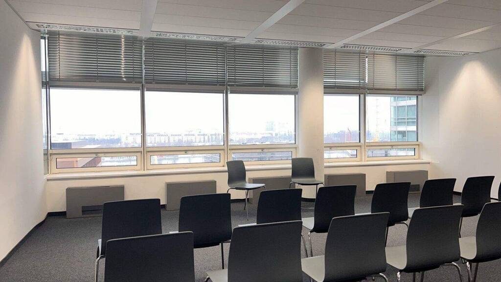 _LED-Beleuchtung und neue FanCoils sind vorhanden. Im 2. Obergeschoss befanden sich bisher Schulungsräume. Die zugehörigen Nassräume befinden sich in den Allgemeinflächen des Gebäudes._