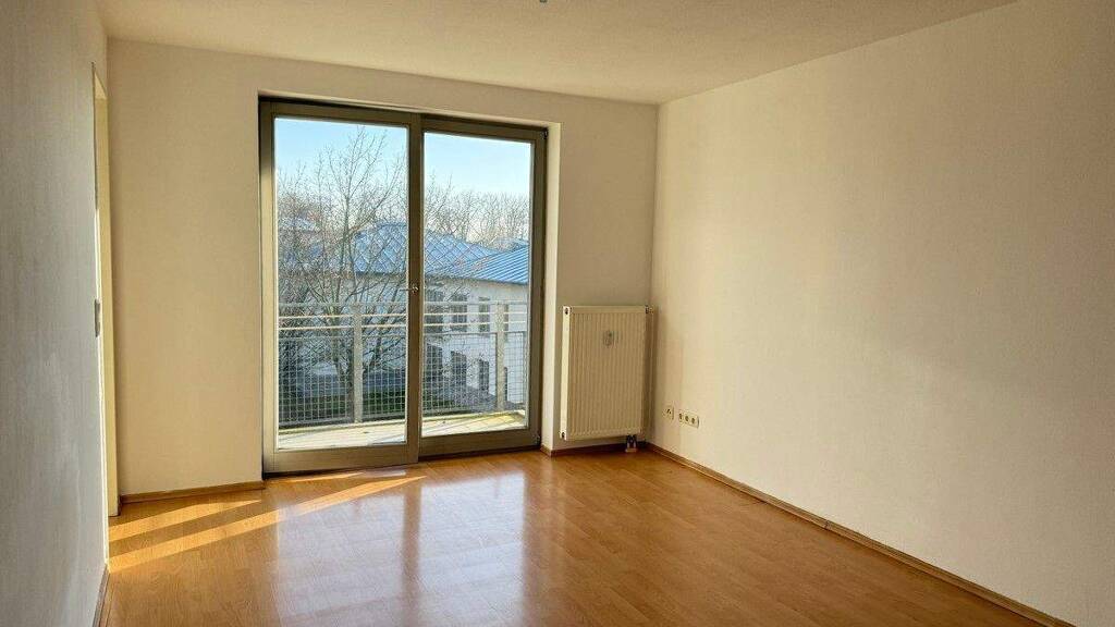 Die Küche, die direkt an den Wohnbereich anschließt, ist mit einer einfachen Einbauküche inklusive E-Geräten ausgestattet, die in der Wohnung verbleibt. Der große Balkon (Ost/Süd) lädt zum Verweilen ein und bietet einen herrlichen Blick auf die grüne Wohnanlage.