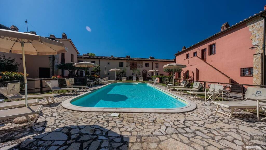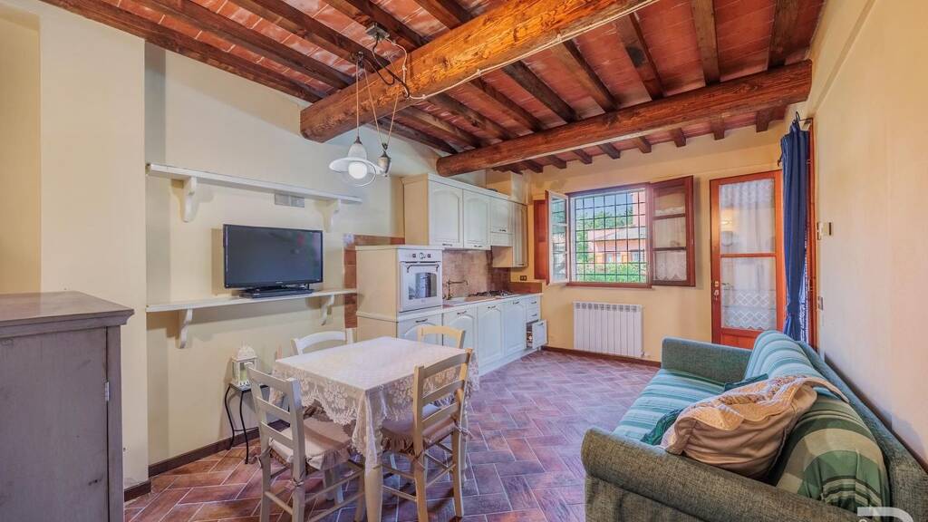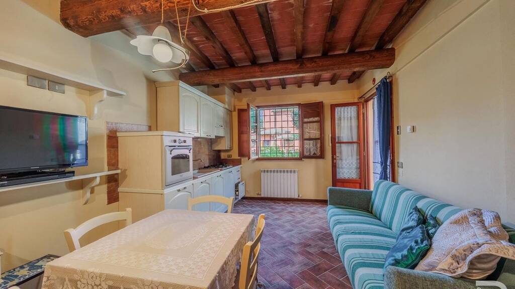 Ein weiterer Pluspunkt der Anlage ist das Gemeinschaftsschwimmbad, das allen Eigentümern zur Verfügung steht und den Wohnkomfort deutlich erhöht – besonders in den Sommermonaten. Der gesamte Borgo befindet sich in einem sehr guten Zustand, was für eine langfristige Werterhaltung der Immobilie spricht. Die jährlichen Kosten (kondominiale Spesen) belaufen sich auf nur 1.000 Euro, was für diese Ausstattung und Lage als ausgesprochen günstig gilt.