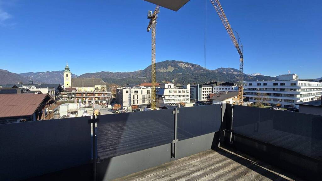 Sehr hochwertige 3-Zimmer-Wohnung im 3. Obergeschoß mit sehr großer Terrasse im Herzen von St. Johann in Tirol. Perfekter Grundriss mit zwei Schlafzimmern mit je eigener Garderobe und Badezimmer.