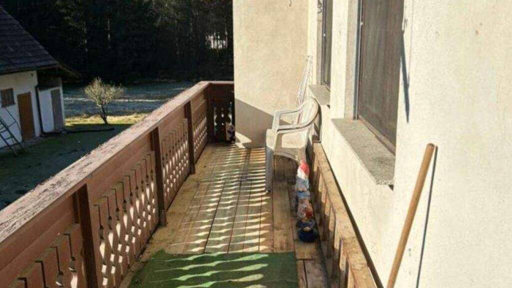 Raumaufteilung: Im Erdgeschoß befindet sich ein Vorraum, der Heizraum, eine von zwei Küchen im Haus, ein Abstellraum, ein Bad mit Dusche und Waschtisch, sowie ein WC. Die Doppelgarage, ein Holzlager und ein Pelletslager, sowie eine weitere Garage sind ebenfalls ebenerdig begehbar. Im Obergeschoß befinden sich eine Diele, ein Bad mit Eckbadewanne und Waschtisch, WC separat, drei getrennt begehbare Zimmer, ein Abstellraum und die zweite geräumige Küche mit Essbereich. Der großzügige und sonnige Balkon ist über den Vorraum begehbar. Zum Haus gehört ein Wirtschaftsgebäude (teilweise in Ziegelmassiv, teilweise Holzriegelwandbauweise), ein Holzschuppen, sowie eine Scheune mit Stallungen für Kleintiere. Ein alter Traktor ist im Haus vorhanden und kann auf Wunsch abgelöst werden.