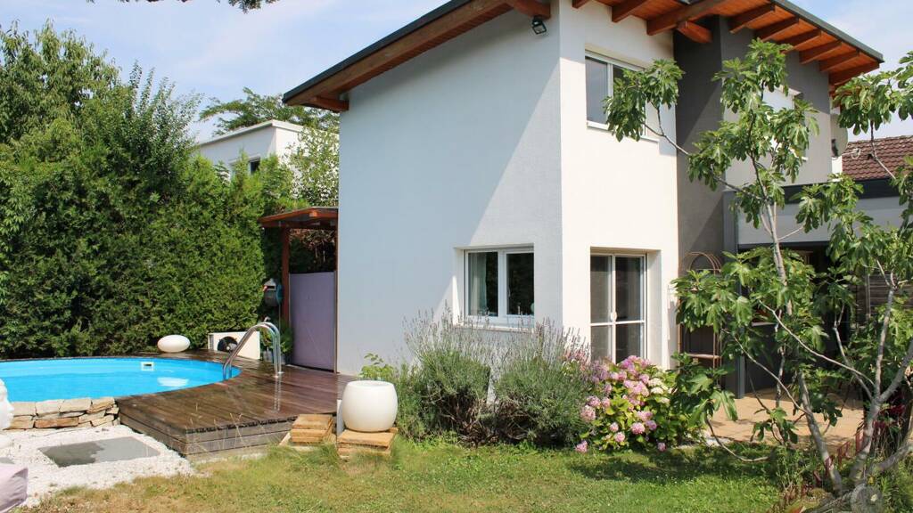 Innen erwartet Sie ein lichtdurchfluteter Wohnbereich mit offener Küche, zwei Schlafzimmer, ein elegantes Bad mit Dampfdusche & Wanne sowie ein vielseitig nutzbarer Wohnkeller. Hochwertige Ausstattung wie Fußbodenheizung, Klimaanlage, Lamellenpergola mit Heimkino, SAT-TV und Internet runden das Angebot ab.