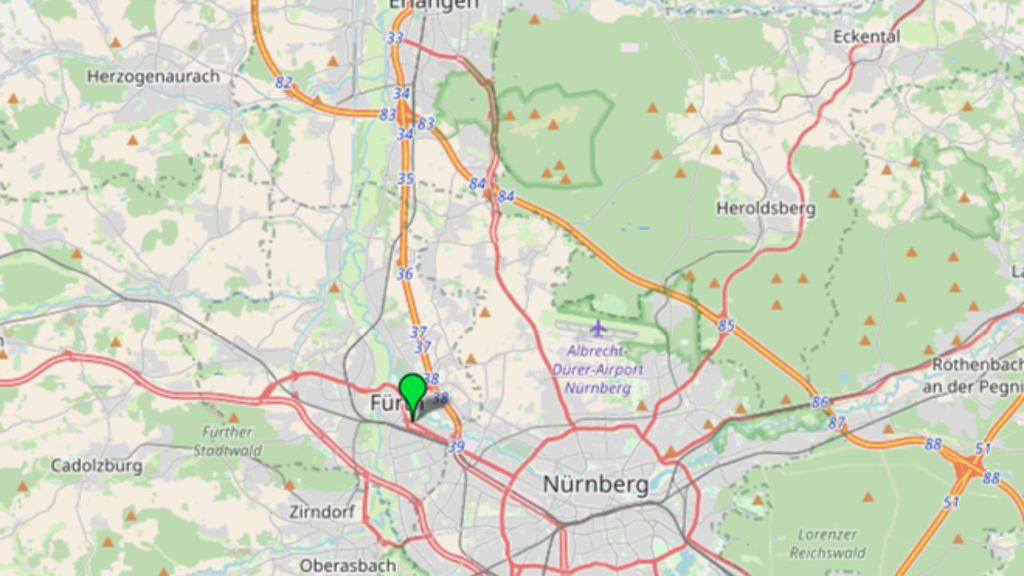 Die Immobilien liegt in Innenstadtnähe, am Rande des Stadtparks der Stadt Fürth.
