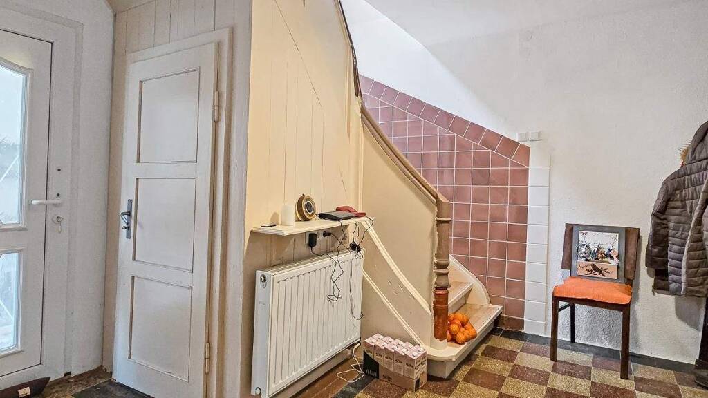 Im Erdgeschoss befinden sich das Wohnzimmer, die Küche, ein Wannenbad sowie sämtliche notwendige Hauswirtschaftsräume. Neben einer Vorratskammer stehen ein Heizungsraum, ein Waschraum und ein separates WC zur Verfügung. Die Raumaufteilung entspricht dem klassischen Grundriss eines ehemaligen Bauernhauses mit funktionaler Struktur.