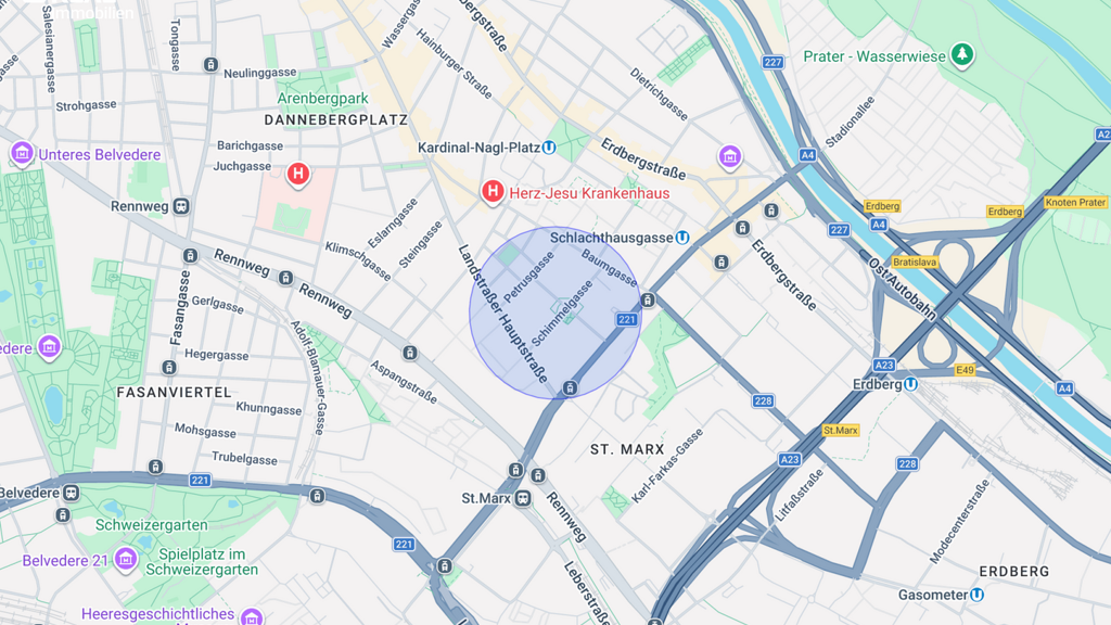 Die Lage in der Schimmelgasse im 3. Bezirk bietet eine perfekte Kombination aus urbanem Komfort und ruhigem Wohnen. In wenigen Minuten erreichen Sie die U-Bahn Linie U3, Straßenbahnlinie 18 sowie die Buslinie 74A. Einkaufsmöglichkeiten, Cafés, Schulen und Grünflächen befinden sich in unmittelbarer Umgebung.