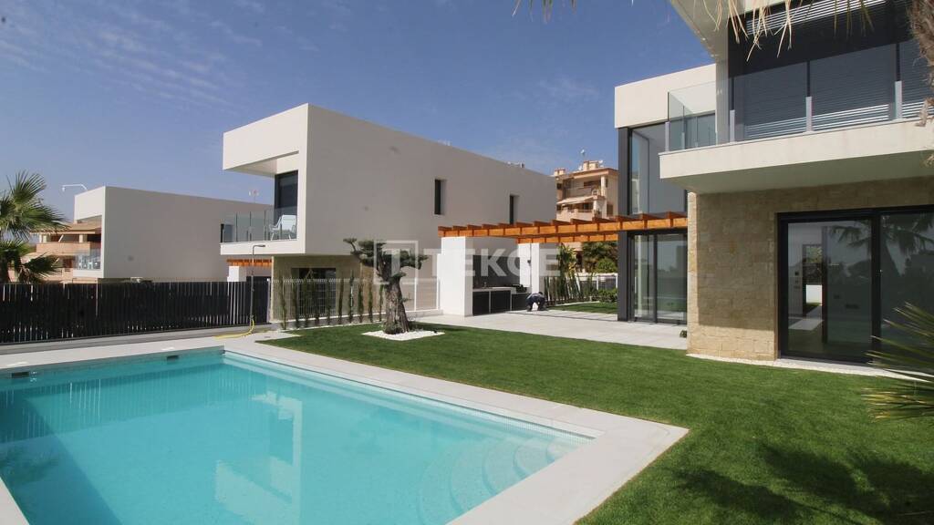 Die Villen zum Verkauf in Alicante sind in einem exklusiven, ruhigen und sicheren Enklaven angesiedelt und bieten eine außergewöhnliche Umgebung. Jede Villa befindet sich auf erhöhtem Gelände und genießt atemberaubende Ausblicke auf das azurblaue Meer und eine optimale Ausrichtung, die die Sonneneinstrahlung maximiert. Nur 5 Minuten von den verfügbaren Villen entfernt befindet sich ein großes Einkaufszentrum, das jeden Einzelhandelswunsch mit einer Vielzahl von Geschäften und Supermärkten erfüllt. Ebenso bequem ist die Nähe zu einer gut angebundenen Bushaltestelle, während eine kurze zusätzliche Fahrt in die Stadt der Wolkenkratzer führt, nämlich Benidorm. Hier erwartet Sie eine atemberaubende Skyline, ergänzt durch Veranstaltungen das ganze Jahr über, eine Vielzahl von Themenparks wie Terra Mitica und eine umfassende Palette an wichtigen Annehmlichkeiten, einschließlich Schulen und medizinischen Zentren.