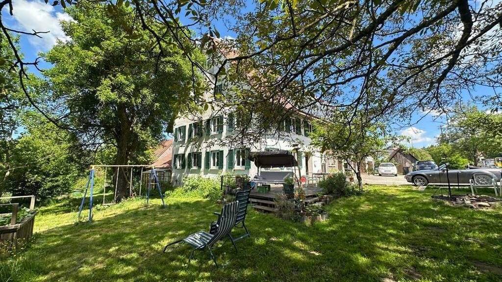 Das weitläufige Grundstück bietet vielfältige Nutzungsmöglichkeiten. Die Stallungen und Nebengebäude eröffnen Optionen für Tierhaltung, Werkstätten, Ateliers oder Lagerflächen. Der nahe angrenzende Weiher verleiht dem Anwesen eine ganz besondere Note und macht es zu einer kleinen Oase der Ruhe mit wunderbaren Badeplätzen.